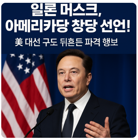 2025년 7월, 테슬라와 스페이스X의 CEO이자 세계적 기업가인 일론 머스크(Elon Musk)가 미국의 새로운 정치 정당인 ‘아메리카당(America Party)’ 창당을 공식 선언했습니다. 이는 미국 정치사에서 비정치인의 제3정당 창당이라는 초유의 사건으로 평가받고 있습니다.