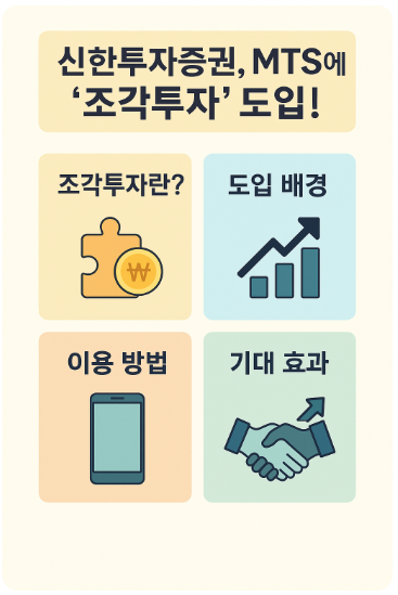 2025년 6월, 신한투자증권이 자사 모바일트레이딩시스템(MTS) 앱에 '조각투자(Fractional Investment)' 메뉴를 공식 도입했습니다. 이번 업데이트는 최근 소액투자 수요가 늘고 있는 흐름을 반영한 것으로, 1주 단위가 아닌 특정 자산을 '분할 단위'로 매입할 수 있게 되었다는 점에서 금융 플랫폼의 패러다임 전환을 예고하고 있습니다.