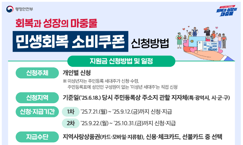 7월 21일부터 민생회복 소비쿠폰 신청 시작! 사용법·혜택 총정리